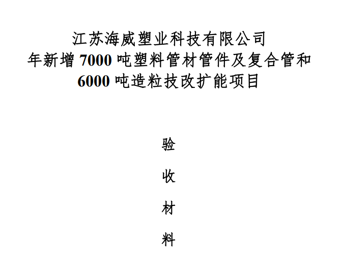 根据《建设项目竣工环境保护暂行办法》,建设项目公示如下:项目名称:年新增7000吨塑料管材管件及复合管和6000吨造粒技改扩能项目;建设地点:江阴市徐霞客镇马镇环镇北路1号;建设单位: 江苏意昂体育4 塑业科技有限公司;公示内容:验收报告( 环境保护竣工验收监测报告、验收意见、其他事项说明、其他附件),详见···