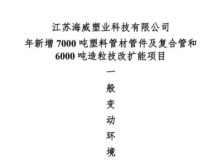 公司年新增7000吨塑料管材管件及复合管和 6000吨造粒技改扩能项目一般变动环境影响分析报告全本